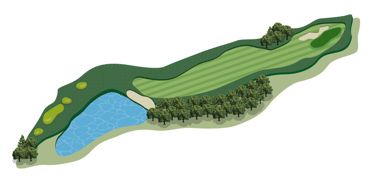 右に池を見ながらのティーショットは、無理せずセンターやや右狙い。フェアウェイのセンターより左に行くと、セカンド地点から木立ちがブラインドとなって、グリーンを狙うのが難しくなる。右サイドからはまっすぐグリーンが狙える。1打1打慎重に攻めて、美しくも苛酷な心臓破りの丘を越えていきたい。