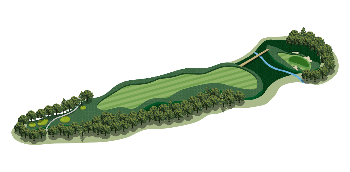 フェアウェイにはひとつもバンカーがないユニークなホール。美しい山並みを眺めながら、豪快にドライバーが打てる。セカンドもセンターを狙って思いきり振れる。勝負はサードショット。左右に長いグリーンを狙った、湿原越えのアプローチがすべて。グリーン周りも狭いので正確なショットが必要。