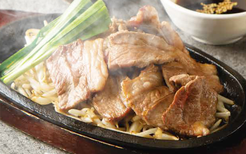 柔らかで臭みのない良質の肉を使い、たっぷりの野菜を添え、目の前でタレをかける演出が食欲をそそります。
